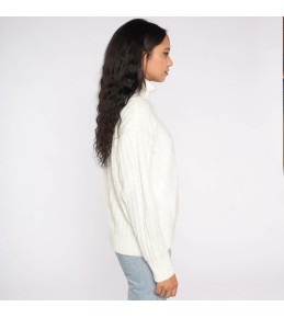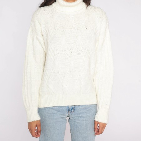 This cream turtleneck sweater is a timeless cold-weather essential with quiet, elevated texture. The front features a refined diamond stitch pattern with delicate open-knit points that add dimension without looking busy. A classic turtleneck collar and clean, minimal silhouette make it easy to style—polished enough for everyday wear, yet cozy enough for layering through fall and winter.