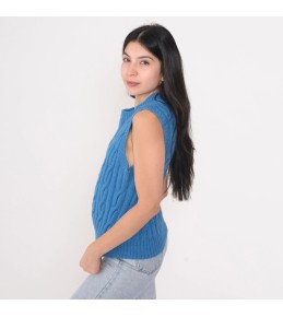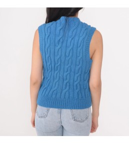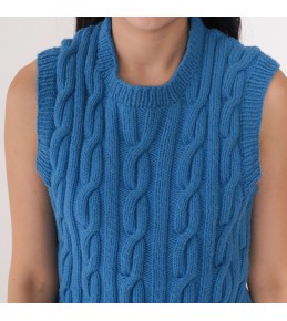 This sky blue sweater vest is a timeless layering piece with rich, classic texture. Designed with an all-over cable-knit pattern, it adds dimension and a polished, put-together feel to even the simplest outfit. The sleeveless cut makes it easy to wear year-round—layer it over shirts and turtlenecks in cooler weather, or style it solo for a clean, modern look in warmer seasons. Finished with ribbed trim at the neckline, armholes, and hem for a neat, structured fit.
